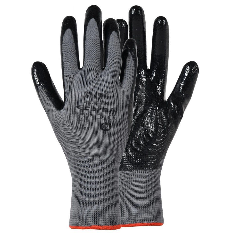 Γάντια νιτριλίου Cofra Cling grey/black με υψηλή αντοχή σε πετρέλαια και λάδια και εξαιρετική λαβή σε στεγνές επιφάνειες. Κατάλληλα για αγροτικές εργασίες, οικοδομικές εργασίες, τη βιομηχανία κλπ.