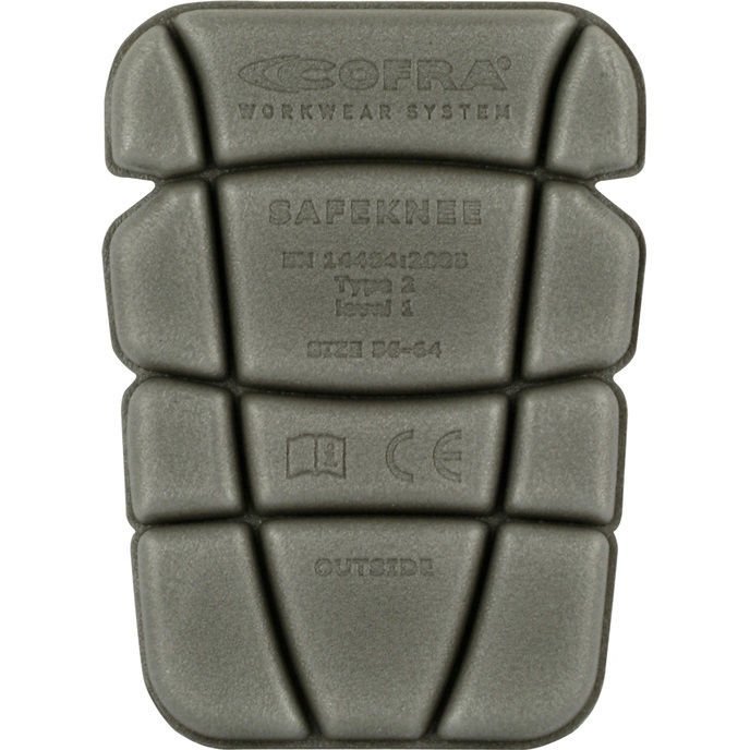 Επιγονατίδες εργασίας εσωτερικές Cofra Safe knee από διογκωμένο πολυαιθυλένιο. Κατασκευασμένες σύμφωνα με το πρότυπο EN14404, προσαρμόζονται στο σχήμα του γόνατος και το προστατεύουν από κρούσεις και αιχμηρά αντικείμενα. Ευέλικτη και ανατομική εφαρμογή, σχεδιασμένες για να ταιριάζουν σε όλα παντελόνια εργασίας.