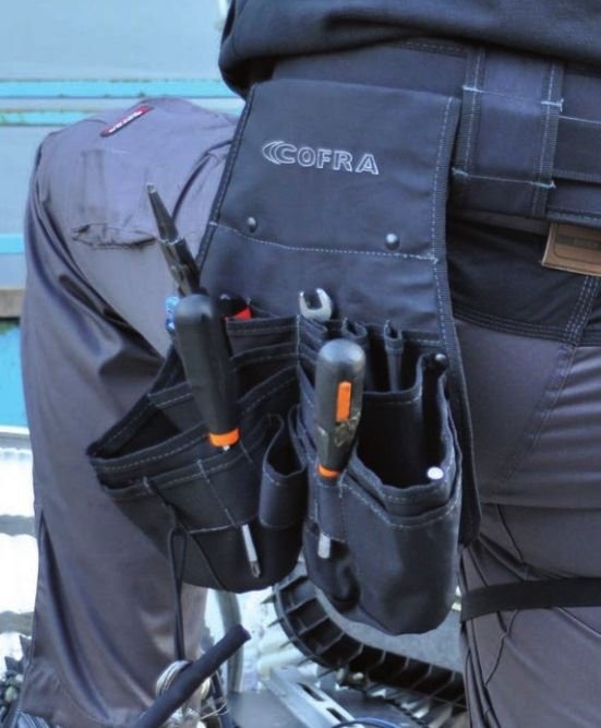 Θήκη εργαλείων μέσης Cofra Kahn από 100% nylon. Μεγάλη αντοχή και διάρκεια ζωής. Με ευρύ χώρο αποθήκευσης. Διαστάσεις 25×31 εκατ.