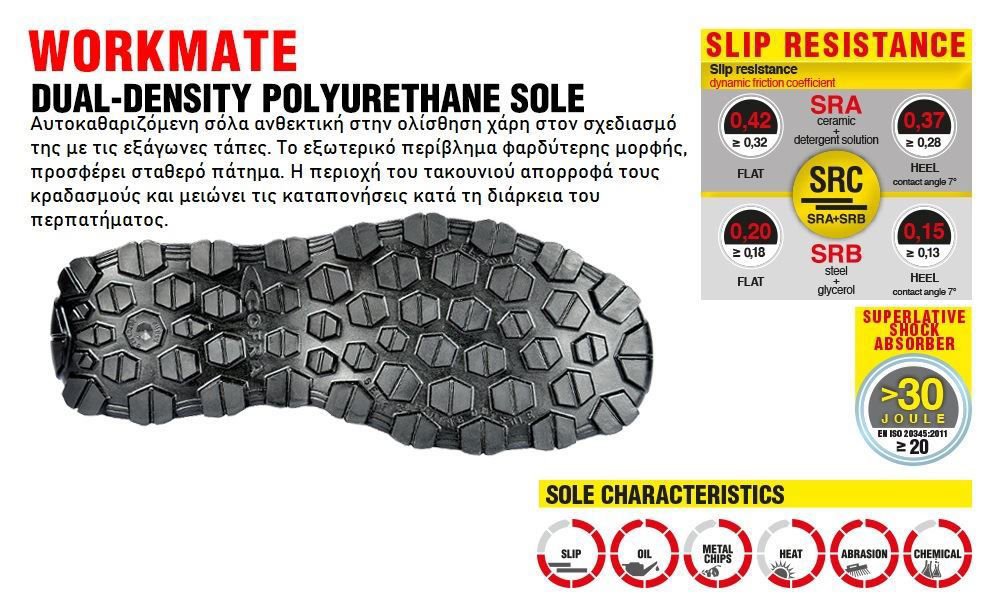 Μποτάκια ασφαλείας Ηλεκτροσυγκολλητή Cofra New Vigo S3 SRC, της σειράς Workmate της Cofra. Ελαφριά, αδιάβροχα, χωρίς τη χρήση μεταλλικών (Metal Free), με προστασία δαχτύλων από υαλούφασμα (fiberglass) και μη μεταλλική ενδιάμεση αδιάτρητη σόλα. Με ικανοποιητική διαπνοή, πολύ μαλακό πάτημα, είναι αντιστατικά, αντιολισθητικά, με ενίσχυση σε κολάρο και γλώσσα, εύκαμπτα, κρατάνε σταθερό τον αστράγαλο, εξαιρετική επιλογή που εγγυάται 100% ασφαλή εργασία.