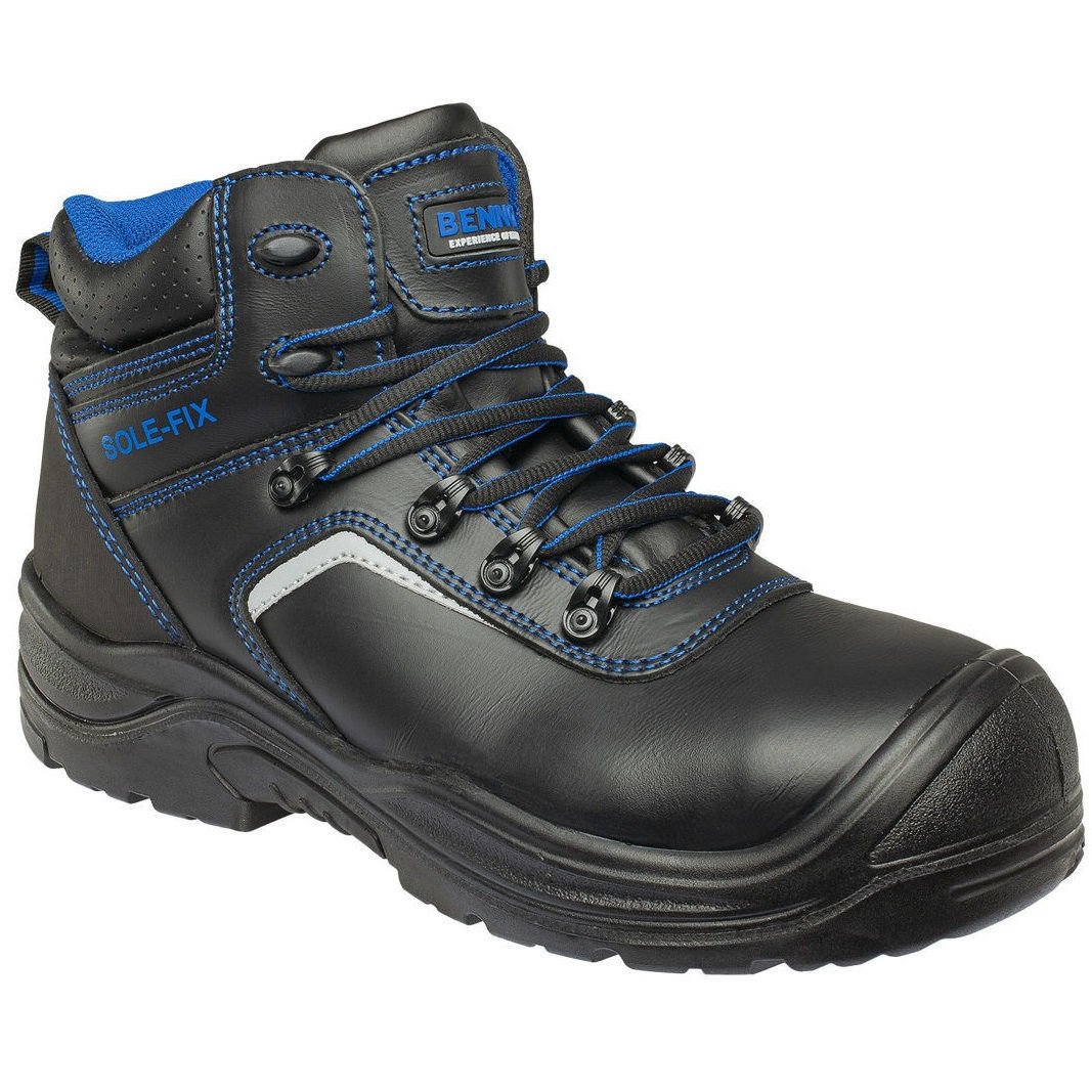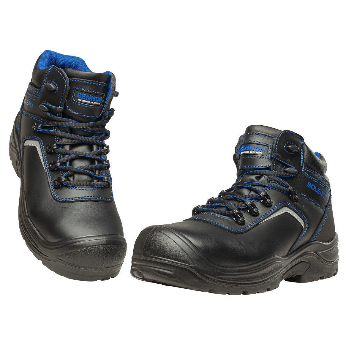 Δερμάτινα μποτάκια ασφαλείας Bennon Raptor S3 SRC. Τα υποδήματα είναι εξοπλισμένα με το σύστημα SOLE-FIX, το οποίο εξασφαλίζει καλύτερη στερέωση του αστραγάλου. Με ανακλαστικά στοιχεία για καλύτερη ορατότητα, πλάκα από kevlar στο πέλμα για προστασία από καρφιά και συνθετικό καπάκι στα δάχτυλα. 100% metal free, χωρίς μεταλλικά στοιχεία.