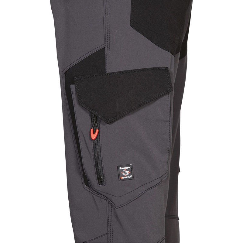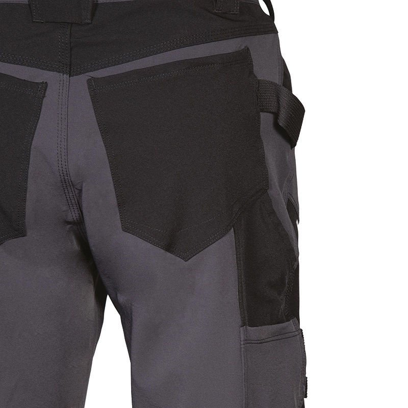 Παντελόνι Εργασίας Ελαστικό 4-way Stretch Cofra Hagfors anthracite/black με στενή εργονομική γραμμή Slim Fit που προσαρμόζεται στο χρήστη. Είναι σχεδιασμένο και κατασκευασμένο με τεχνικά υφάσματα που χρησιμοποιούνται στον αθλητισμό και πιο συγκεκριμένα στον κλάδο της πεζοπορίας και του trekking. Προσφέρει πολύ μεγάλη διαπνοή και διαθέτει ανθεκτικότητα και υψηλή αντοχή στον εφελκυσμό και το σκίσιμο.