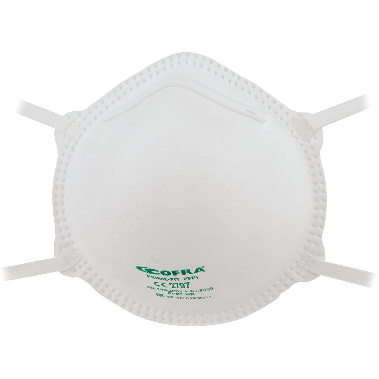 Κυπελλοειδής φιλτρομάσκα Cofra Prime-Fit FFP1. Ο εργονομικός σχεδιασμός εξασφαλίζει άριστη προσκόλληση στο πρόσωπο και άνεση σε πολύωρη χρήση. Χωρίς εκτεθειμένα μεταλλικά στοιχεία. Τα υλικά κατασκευής είναι μακράς διαρκείας και κατάλληλα για καθημερινή χρήση.