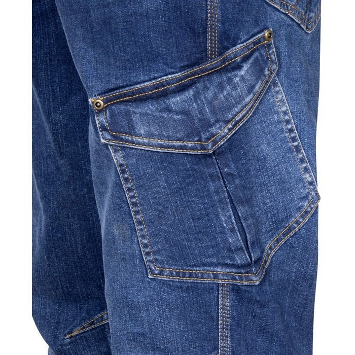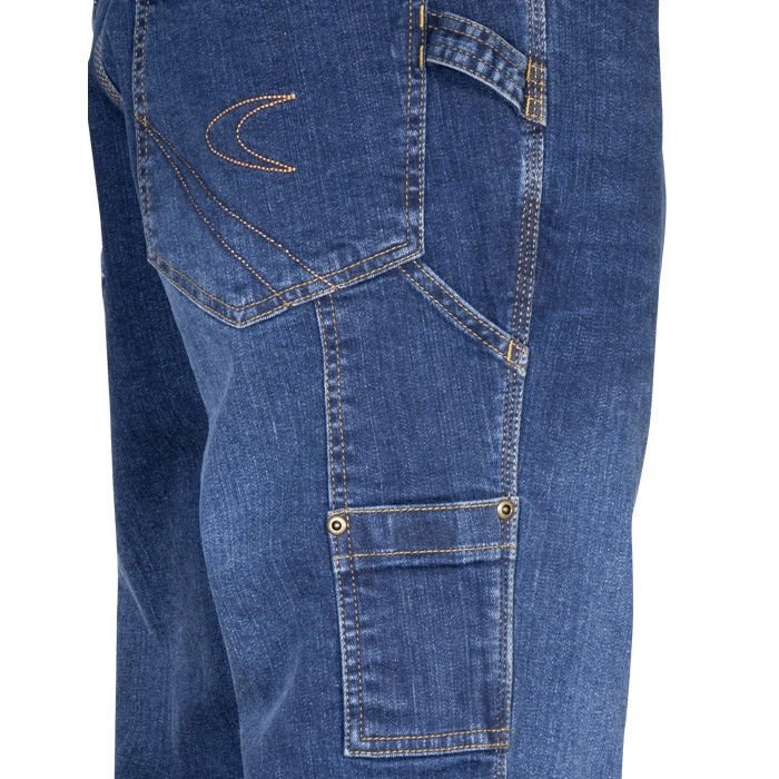 Jean Ελαστικό Παντελόνι Εργασίας (2 way stretch) Cofra Paradas dark blue, βάρους 375 g/m². Από 98% βαμβάκι και 2% ελαστάνη που προσδίδει ελαστικότητα και ελευθερία κινήσεων. Προσφέρει μεγάλη άνεση κατά την εργασία και υψηλή ανθεκτικότητα στις καθημερινές κακουχίες. Ο σχεδιασμός έχει μελετηθεί για να καλύπτει τις ανάγκες των εργαζομένων με στιβαρή δομή που χαρακτηρίζεται από τριπλές ραφές στις περιοχές που υπόκεινται σε μεγαλύτερη φθορά, καθώς και πριτσίνια και καρφίτσες για να εξασφαλίζεται μακροχρόνια ανθεκτικότητα.